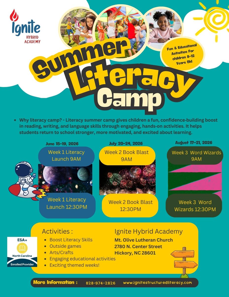 Ignite is hosting 3 fantastic weeks of summer camp where literacy is a focus and fun is a guarantee!
